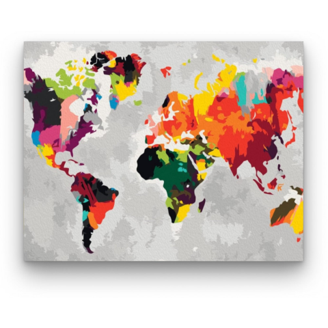 1 kép Számfestő Szürke és Színes Világtérkép - számfestő készlet