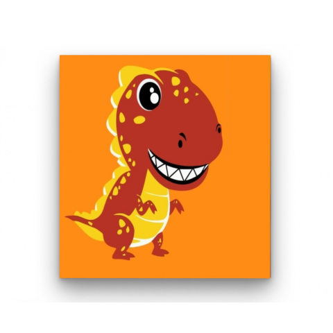 T-Rex - gyerek számfestő készlet – 20×20 cm (Keret nélkül) Ez a kép egy vidám T-Rexet ábrázol, aki nagy mosollyal néz ránk a narancssárga háttér előtt. A piros és sárga színek izgalmas kalandra invitálnak. Tökéletes választás a gyerekek első dínós festő k