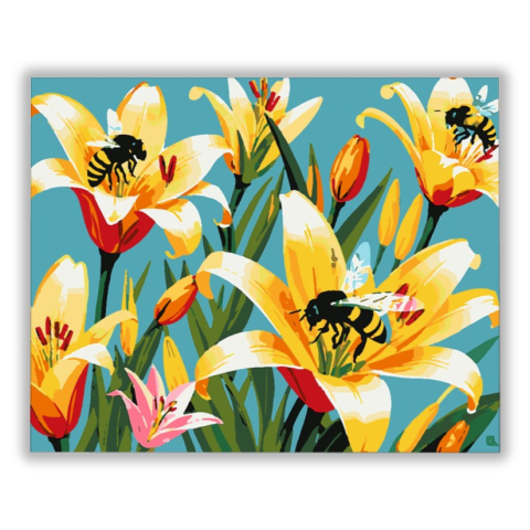 Tavaszi Virág Beporzás - húsvéti számfestő készlet – 40×50 cm (Keret nélkül) Ez a festmény élettel teli és friss energiát sugároz, mintha egy tavaszi reggel közepébe csöppennénk. A képen megelevenedő történet a természet csodálatos harmóniáját meséli el,