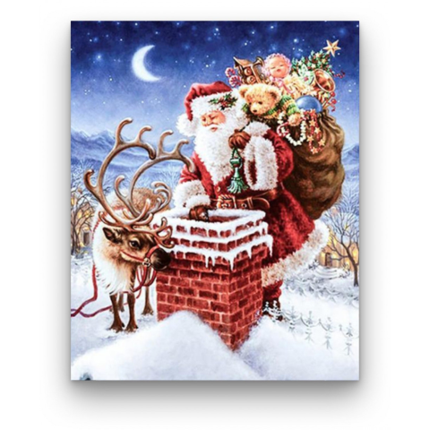 Télapó a háztetőn - számfestő készlet – 40×50 cm (Keret nélkül) Készíts gyönyörű műalkotásokat, előzetes festő tudás nélkül! Éld át az alkotás gyönyörű pillanatait és varázslatos hangulatát! Akkor is gyönyörű festményeket hozhatsz létre, ha még nem festet