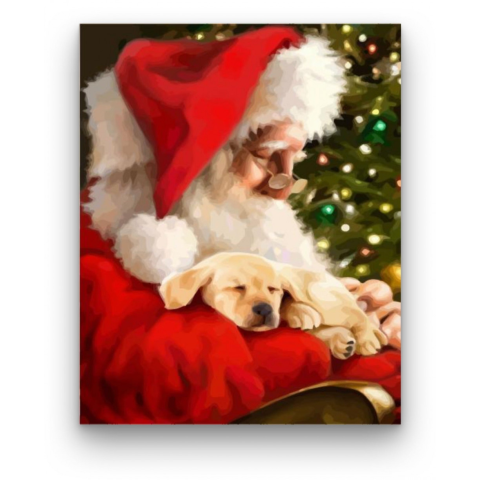 Télapó kiskutyával - számfestő készlet – 40×50 cm (Keret nélkül) Készíts gyönyörű műalkotásokat, előzetes festő tudás nélkül! Éld át az alkotás gyönyörű pillanatait és varázslatos hangulatát! Akkor is gyönyörű festményeket hozhatsz létre, ha még nem feste