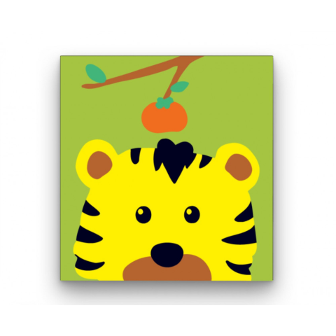 Tigris és az Alma - gyerek számfestő készlet – 20×20 cm (Keret nélkül) Ez a kép egy barátságos kis tigriskét ábrázol, aki kíváncsian néz egy lógó almára. A tigris vidám sárga és fekete csíkos bundája mosolyt csal az arcodra. Tökéletes választás a gyerekek