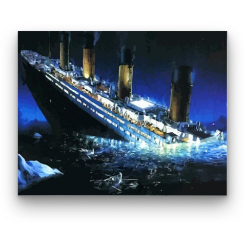 Titanic drámája - számfestő készlet – 40×50 cm (Keret nélkül) A festmény drámai feszültséggel tölti meg a levegőt, ahogy a Titanic végzetes útját ábrázolja. A kép mögött egy történet bontakozik ki, tele izgalommal és tragédiával. A sötétkék és fekete árny