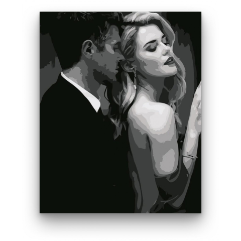 Titkos romantika - számfestő készlet – 40×50 cm (Keret nélkül) A kép egy titokzatos és romantikus hangulatot áraszt, amely azonnal magával ragadja a nézőt. Egy elbűvölő pillanatot örökít meg, ahol a csendes intimitás uralkodik. A fekete-fehér színek kontr