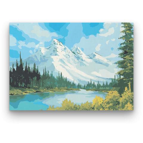 Tó a Hegynél - számfestő készlet – 40×50 cm (Keret nélkül) A festmény nyugodt, békés hangulatot áraszt, mintha egy távoli hegyi tó partján állnánk. A kép története egy csendes pillanatot mesél el, ahol a természet érintetlen szépsége tárul elénk. A kék és