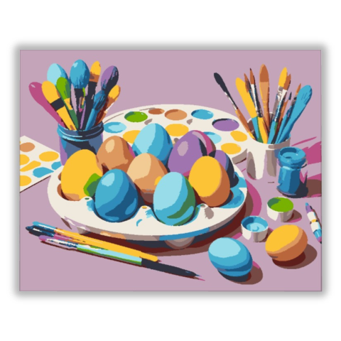 Tojásfestés - húsvéti számfestő készlet – 40×50 cm (Keret nélkül) Készíts gyönyörű műalkotásokat, előzetes festő tudás nélkül! Éld át az alkotás gyönyörű pillanatait és varázslatos hangulatát! Akkor is gyönyörű festményeket hozhatsz létre, ha még nem fest