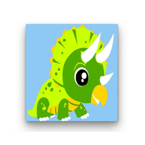 Triceratropsz - gyerek számfestő készlet – 20×20 cm (Keret nélkül) Ez a kép egy bájos, zöld triceratopszot ábrázol, aki vidáman mosolyog a kék ég alatt. A színes festékekkel életre kelthető a kis dinó, aki izgatottan várja, hogy részt vegyen a gyerekek kr