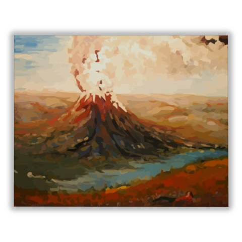 Tűzhányó a folyónál - számfestő készlet – 40×50 cm (Keret nélkül) A festmény dinamikus energiája azonnal magával ragadja a nézőt, mintha a természet erejét éreznénk. A kép egy történetet mesél el a föld mélyéből feltörő erőről és a környezetre gyakorolt h