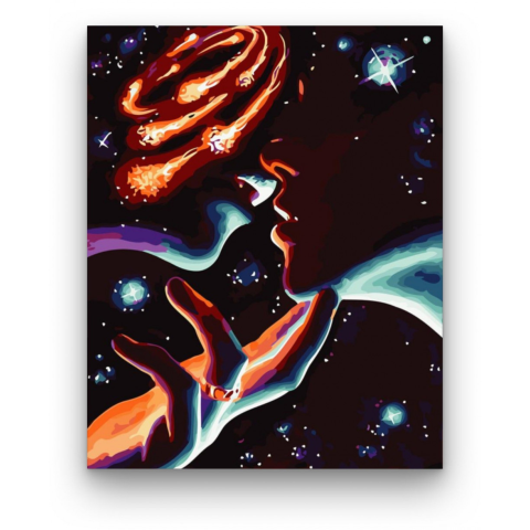 Univerzum csodája - számfestő készlet – 40×50 cm (Keret nélkül) Ez a festmény az univerzum végtelen csodáját idézi meg, misztikus és elgondolkodtató érzéseket keltve. A kép egy rejtélyes történetet mesél el az űr és az emberi lélek kapcsolatáról. Az élénk