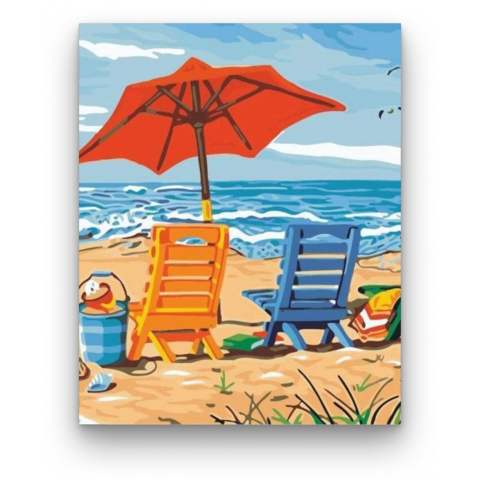 Vakáció - számfestő készlet – 40×50 cm (Keret nélkül) A festmény nyugodt, tengerparti hangulatot áraszt, amely a pihenés és kikapcsolódás pillanatait idézi. A háttérben a tenger hullámai halkan morajlanak, míg az élénk színek életre keltik a jelenetet. A