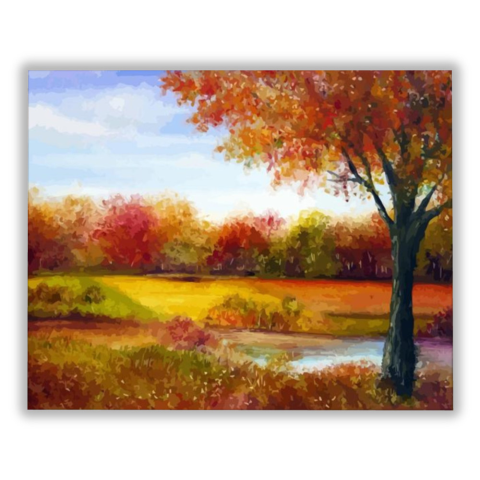 Változás - számfestő készlet – 40×50 cm (Keret nélkül) Ez a festmény az ősz meleg, meghitt hangulatát idézi meg, mintha egy álomszerű tájra tekintenénk. A kép mesél egy csendes délutánról, ahol a természet átöleli a szemlélőt. Az élénk vörös és arany szín