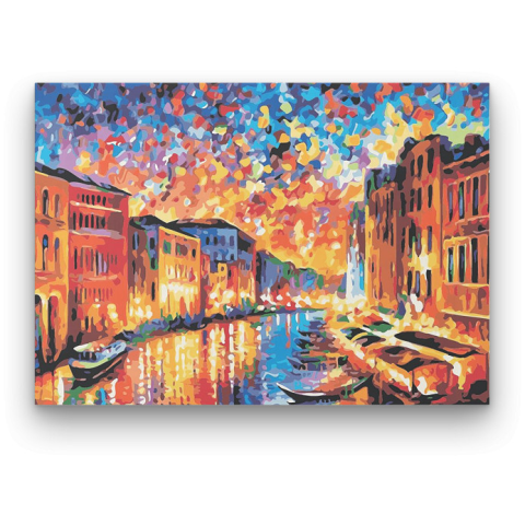 Velencei Napnyugta - számfestő készlet – 40×50 cm (Keret nélkül) Készíts gyönyörű műalkotásokat, előzetes festő tudás nélkül! Éld át az alkotás gyönyörű pillanatait és varázslatos hangulatát! Akkor is gyönyörű festményeket hozhatsz létre, ha még nem feste