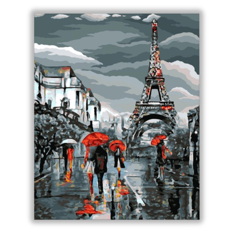 Vihar Párizsban - számfestő készlet – 40×50 cm (Keret nélkül) Készíts gyönyörű műalkotásokat, előzetes festő tudás nélkül! Éld át az alkotás gyönyörű pillanatait és varázslatos hangulatát! Akkor is gyönyörű festményeket hozhatsz létre, ha még nem festetté
