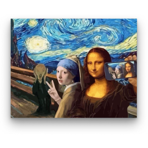 Világhírű szelfi - számfestő készlet – 40×50 cm (Keret nélkül) Készíts gyönyörű műalkotásokat, előzetes festő tudás nélkül! Éld át az alkotás gyönyörű pillanatait és varázslatos hangulatát! Akkor is gyönyörű festményeket hozhatsz létre, ha még nem festett