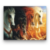 Villám lovak - számfestő készlet – 40×50 cm (Keret nélkül) A festmény dinamikus energiával és misztikus erővel tölti meg a teret. A lovak viharos vágtája egy izgalmas utazás kezdetét sejteti, ahol az idő megállni látszik. A vibráló színek és a háttér ragy