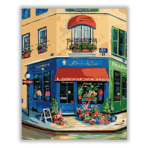 Virág bolt - számfestő készlet – 40×50 cm (Keret nélkül) Készíts gyönyörű műalkotásokat, előzetes festő tudás nélkül! Éld át az alkotás gyönyörű pillanatait és varázslatos hangulatát! Akkor is gyönyörű festményeket hozhatsz létre, ha még nem festettél vás