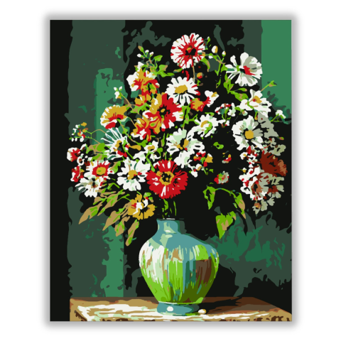 1 kép Számfestő Virágcsokor zöld vázában - számfestő készlet