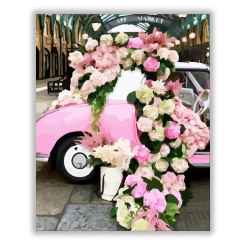 Virágos kis autó - számfestő készlet – 40×50 cm (Keret nélkül) Ez a festmény egy romantikus, nosztalgikus hangulatot áraszt, amely azonnal elvarázsolja a nézőt. Egy történetet mesél el egy különleges nap emlékéről, ahol a természet és az ember alkotta szé