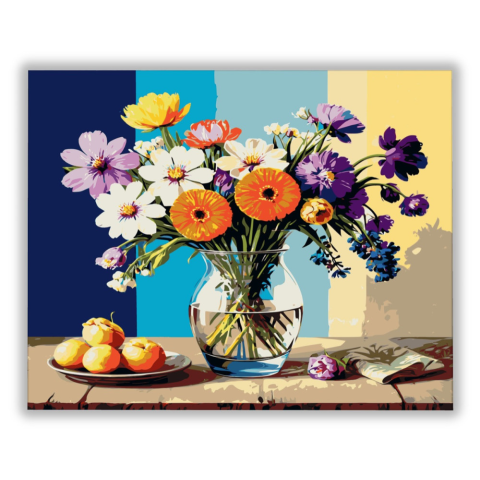 Vízparti virágok - számfestő készlet – 40×50 cm (Keret nélkül) Ez a festmény vibráló életörömöt sugároz, mintha egy napsütéses reggel friss levegőjét hozná el otthonunkba. A virágok mesés kavalkádja egy történetet mesél az elmúló nyár varázsáról és a term