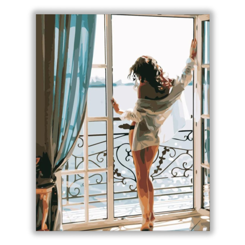 Vonzó hölgy - számfestő készlet – 40×50 cm (Keret nélkül) Ez a festmény egy nyugodt, álmodozó hangulatot áraszt, amely elvarázsolja a nézőt. Egy történet bontakozik ki, ahol a szabadság és a természet közelsége találkozik egy pillanatban. A lágy kékek és