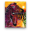 Zebrák - számfestő készlet – 40×50 cm (Keret nélkül) A festmény élénk színei az afrikai naplemente varázsát idézik, melyben a zebrák meleg ölelésben találkoznak. A kompozícióban rejlő történet a természet harmóniáját és az állatok közötti csendes megértés