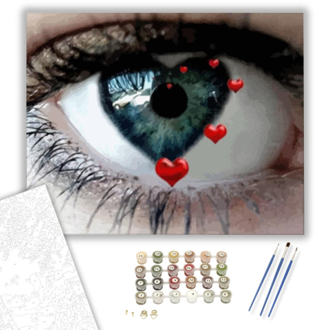 A szememben - számfestő készlet – 40×50 cm (Keretre feszítve) Ez a festmény varázslatosan megkapó, a szem mélyén rejlő érzelmeket tárja elénk. Egy titokzatos történet bontakozik ki, ahol a szeretet és vágyódás találkozik. A színek kontrasztja élénken kiem