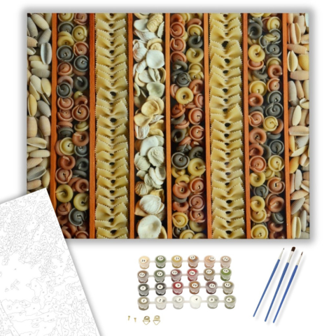 A tészták útjai - számfestő készlet – 40×50 cm (Keretre feszítve) Készíts gyönyörű műalkotásokat, előzetes festő tudás nélkül! Éld át az alkotás gyönyörű pillanatait és varázslatos hangulatát! Akkor is gyönyörű festményeket hozhatsz létre, ha még nem fest