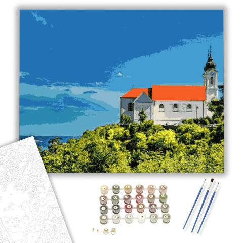 A Tihanyi Apátság - számfestő készlet – 40×50 cm (Keretre feszítve) Készíts gyönyörű műalkotásokat, előzetes festő tudás nélkül! Éld át az alkotás gyönyörű pillanatait és varázslatos hangulatát! Akkor is gyönyörű festményeket hozhatsz létre, ha még nem fe