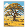 Acacia Fa a Szavannán - számfestő készlet – 40×50 cm (Keret nélkül) A festmény egy hatalmas akácfát ábrázol a végtelen szavannán, ahol az ágak árnyékot vetnek az aranyló fűre. A kép meleg, napsütötte színvilága nyugalmat és időtlenséget sugároz. A látvány