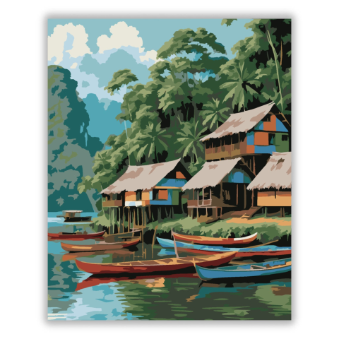 1 kép Számfestő.hu Amazonasi Cölöpfalu a Folyó Partján - számfestő készlet