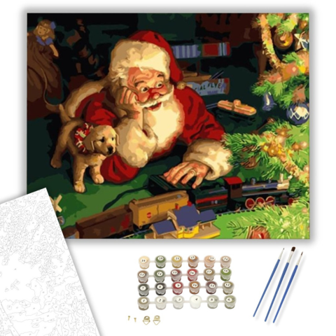 1 kép Számfestő.hu Ámuló télapó - számfestő készlet – 40×50 cm (Keretre feszítve)