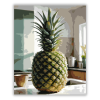 Ananász Napfényben - számfestő készlet – 40×50 cm (Keret nélkül) A festmény egy egész ananászt ábrázol egy konyhai szigeten, amelyet napfény világít meg, kiemelve a texturált héját és tüskés zöld koronáját. A kép gazdag zöld és sárga árnyalatokkal operál,