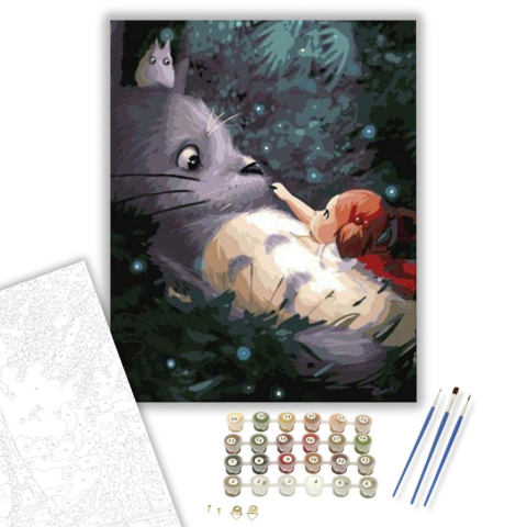 Aranyos Állatok - számfestő készlet – 40×50 cm (Keretre feszítve) A festmény meghitt, varázslatos hangulatot áraszt, mintha egy mesebeli világba repítene. Egy titokzatos találkozás történetét meséli el, ahol a természet és a fantázia határai elmosódnak. A
