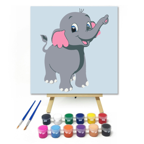1 kép Számfestő.hu Aranyos Kiselefánt - gyerek számfestő készlet – 20×20 cm (Keretre feszítve)