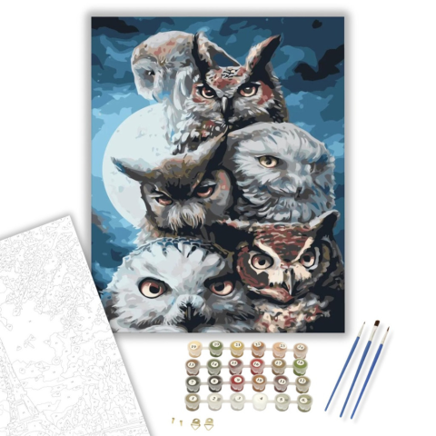 1 kép Számfestő.hu Bagoly banda - számfestő készlet – 40×50 cm (Keretre feszítve)