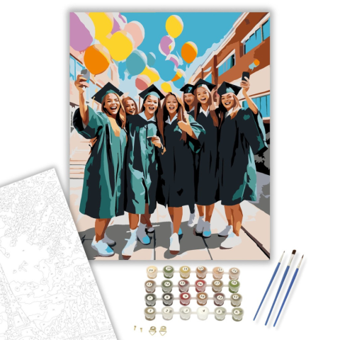 1 kép Számfestő.hu Ballagó Fiatalok Színes Lufikkal - számfestő készlet – 40×50 cm (Keretre feszítve)