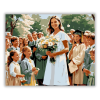 Ballagó Lány Virágcsokorral - számfestő készlet – 40×50 cm (Keret nélkül) A festmény egy fiatal lányt ábrázol fehér ruhában, aki virágcsokrot kap a ballagási ünnepségen, miközben családja tapsol a háttérben. A kép meleg, barátságos színekkel és napfényes