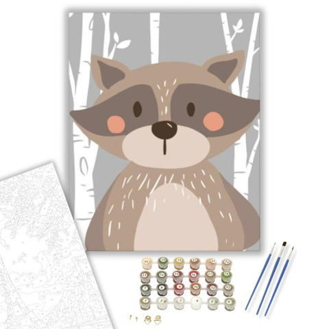 1 kép Számfestő.hu Barna mosómedve - számfestő készlet – 40×50 cm (Keretre feszítve)