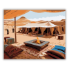 Beduin Tábor a Szaharában - számfestő készlet – 40×50 cm (Keret nélkül) A festmény egy hagyományos beduin tábort ábrázol a Szahara sivatag homokdűnéi között, szőnyegekkel és alacsony asztalokkal. A meleg földszínek és a tűz fénye barátságos, meghitt hangu