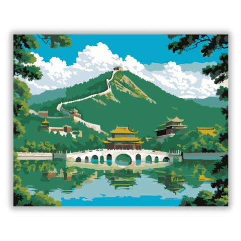 Beijing Nyári Palota Harmóniája - számfestő készlet – 40×50 cm (Keret nélkül) A festmény a pekingi Nyári Palota lenyűgöző panorámáját ábrázolja, a Kunming-tó nyugodt vizével és a Seventeen-Arch híd elegáns ívével. A kompozíció gazdag zöld és arany árnyala