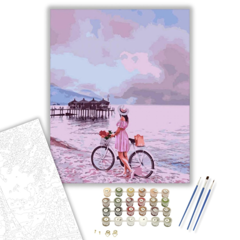 1 kép Számfestő.hu Biciklivel a parton - számfestő készlet – 40×50 cm (Keretre feszítve)