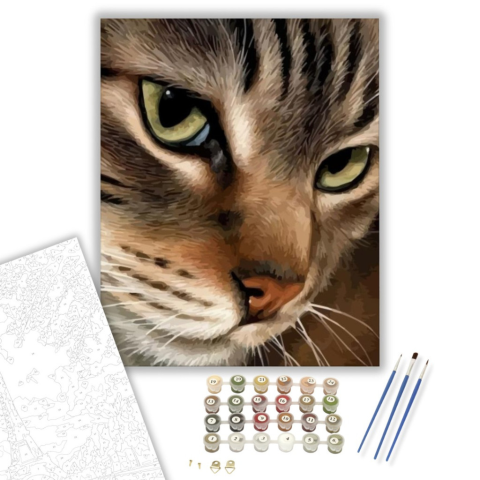 Cica figyelem - számfestő készlet – 40×50 cm (Keretre feszítve) Készíts gyönyörű műalkotásokat, előzetes festő tudás nélkül! Éld át az alkotás gyönyörű pillanatait és varázslatos hangulatát! Akkor is gyönyörű festményeket hozhatsz létre, ha még nem festet