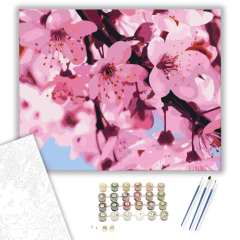 Cseresznyevirág - számfestő készlet – 40×50 cm (Keretre feszítve) A cseresznyevirágok finom rózsaszínje egy pillanatra megállítja az időt, békés nyugalmat árasztva. Egy történet bontakozik ki a természet ébredéséről, a tavasz első hírnökeinek érkezésével.