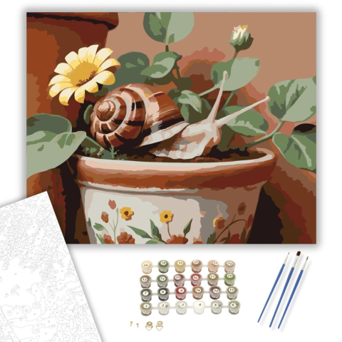 1 kép Számfestő.hu Csiga Terrakotta Cserépen - számfestő készlet – 40×50 cm (Keretre feszítve)