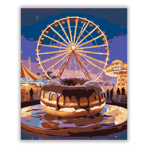 1 kép Számfestő.hu Csokoládéval Borított Fánk Vidámparki Háttérrel - számfestő készlet