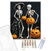 Csontvázas Őrszemek - számfestő készlet – 40×50 cm (Keretre feszítve) Ez a 'Csontvázas Őrszemek' számfestő készlet megidézi a Halloween éjszakai varázslatát, ahol csontvázak vigyázzák a tökéket holdfényben. Tökéletes választás azoknak, akik a hagyományos