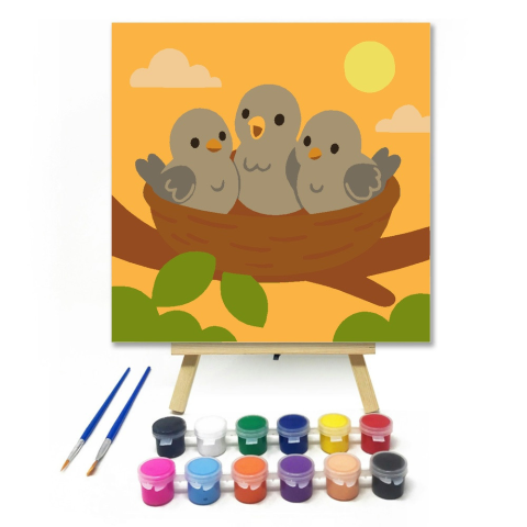 1 kép Számfestő.hu Cuki Madárfiókák a Fészekben - gyerek számfestő készlet