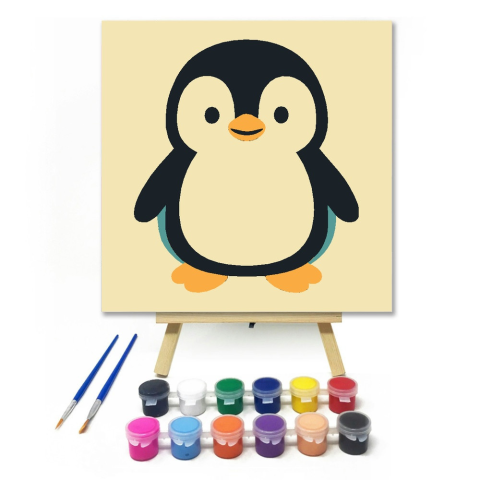 1 kép Számfestő.hu Cuki Pingvin Barát - gyerek számfestő készlet – 20×20 cm (Keretre feszítve)