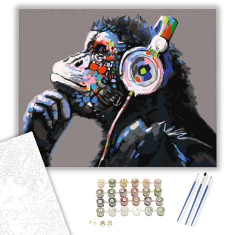 1 kép Számfestő.hu DJ Csimpánz - számfestő készlet – 40×50 cm (Keretre feszítve)