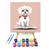 Édes kis barát - gyerek számfestő készlet – 20×20 cm (Keretre feszítve) Ez a kép egy aranyos kiskutyust ábrázol, aki kíváncsian üldögél egy nyitott könyvön. A vidám színek és a kedves kutyus bájos hangulatot árasztanak. Tökéletes választás a gyerekek első